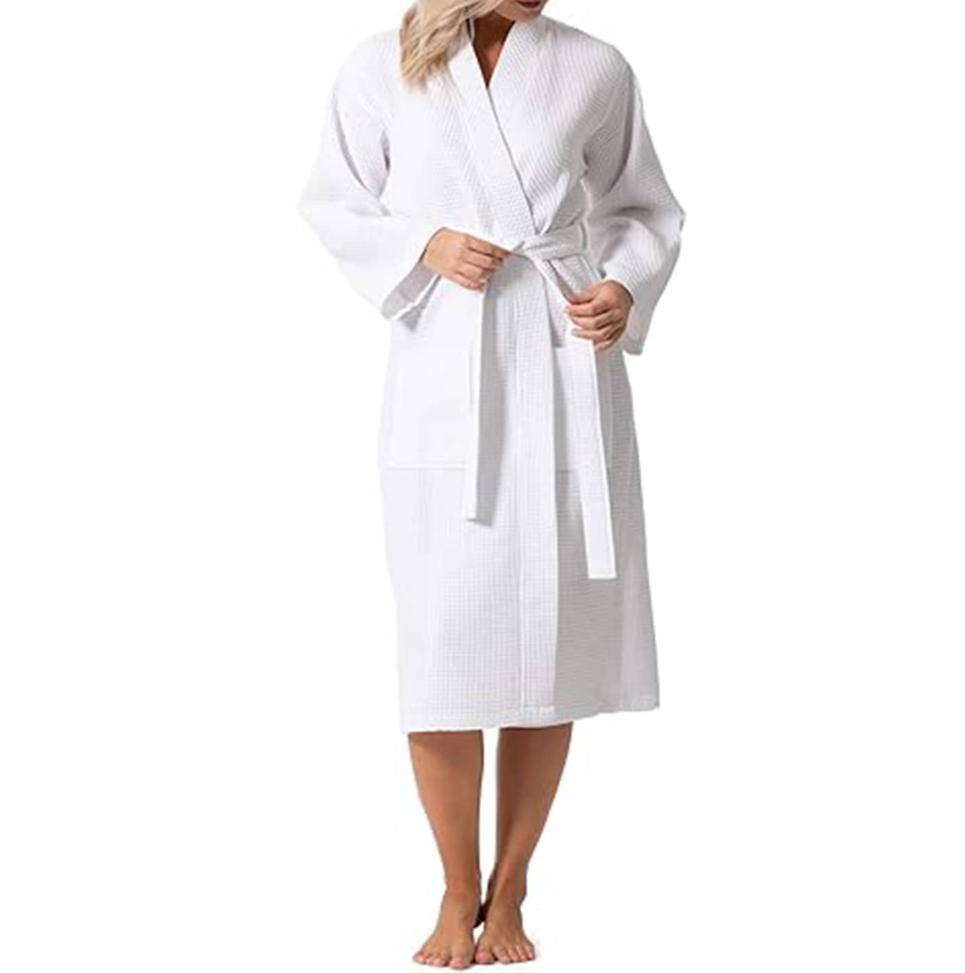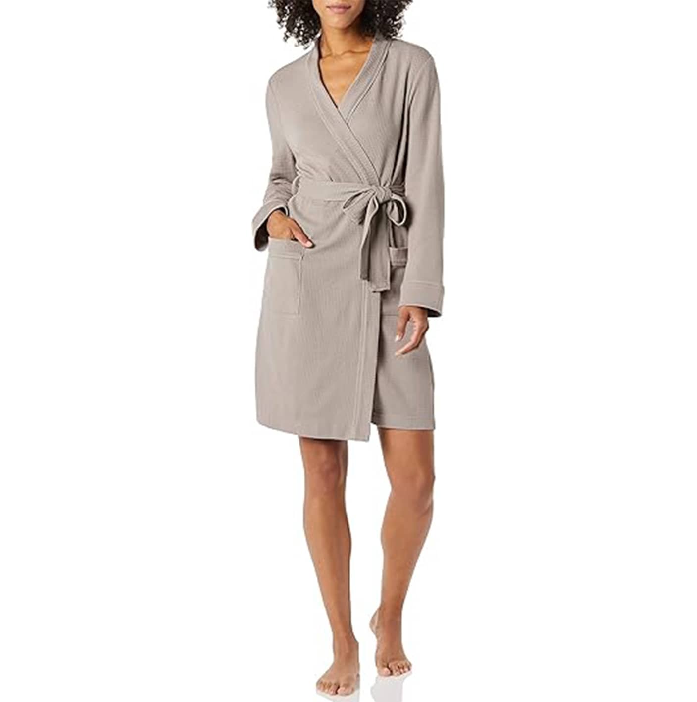 I bought this lightweight robe for travel and have enjoyed it. Simple, cotton, comfortable, fits great, and easy to pack.